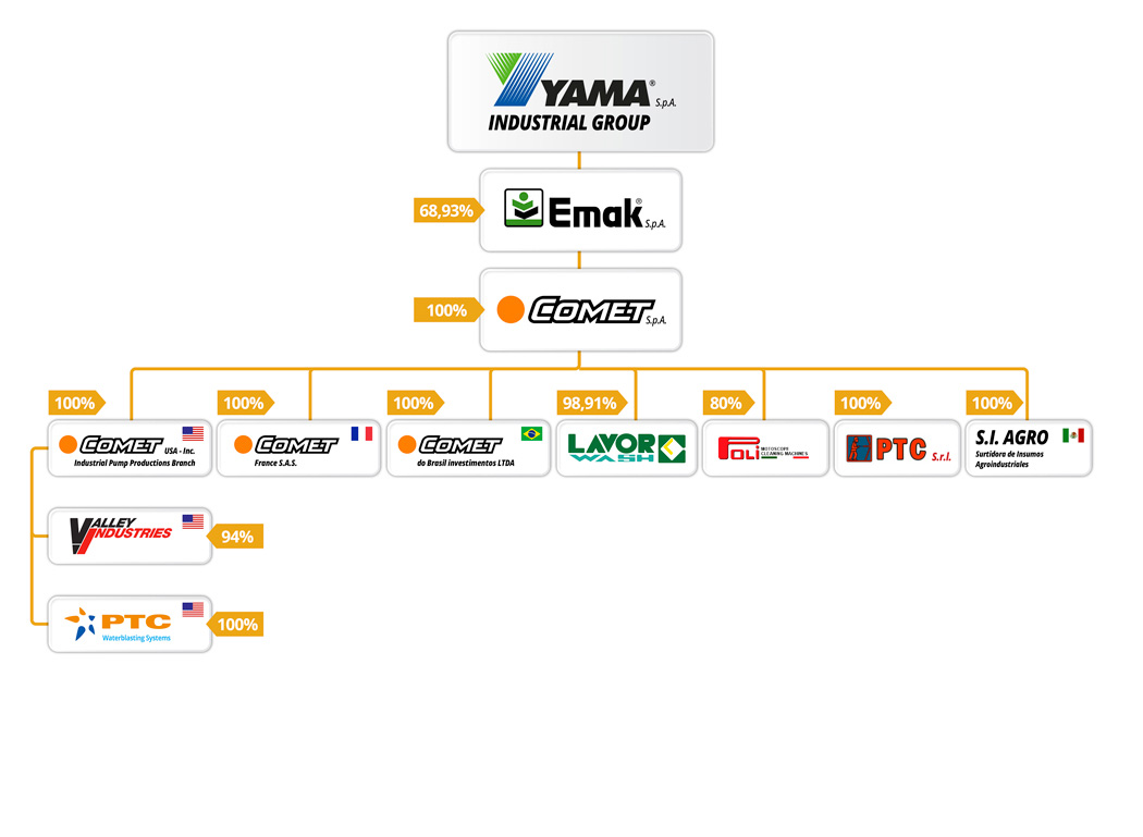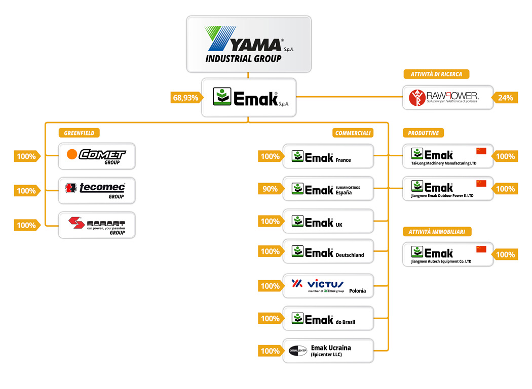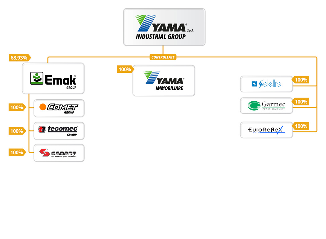 Yama raggruppa oggi, direttamente ed indirettamente 40 imprese, che rappresentano il maggior polo italiano nella produzione e commercializzazione di piccole macchine per l’agricoltura, il giardinaggio, il forestale e componenti vari. L’unione di diverse aziende che operano in segmenti di mercato contigui, si é dimostrato nel tempo una svolta vincente ed ha creato le condizioni più favorevoli per affrontare efficacemente le sfide poste da un mercato globale sempre più esigente, competitivo ed in rapida trasformazione, ciò a conferma ancora una volta della forza che nasce dalla collaborazione.
